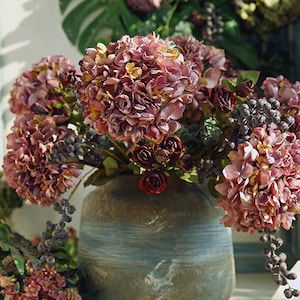 Artificial Single Stem Hydrangea, Multicolor Hydrangea, Real Touch Hydrangea, Rustic Floral Decoration, Wedding Bridal Bouquet, Living Room Flowers Decor