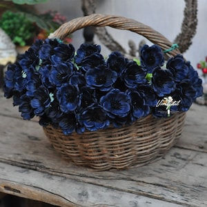 Navy blue One Bundle Artificial Silk rose Mini Ranunculus Artificial 6 Stems Si